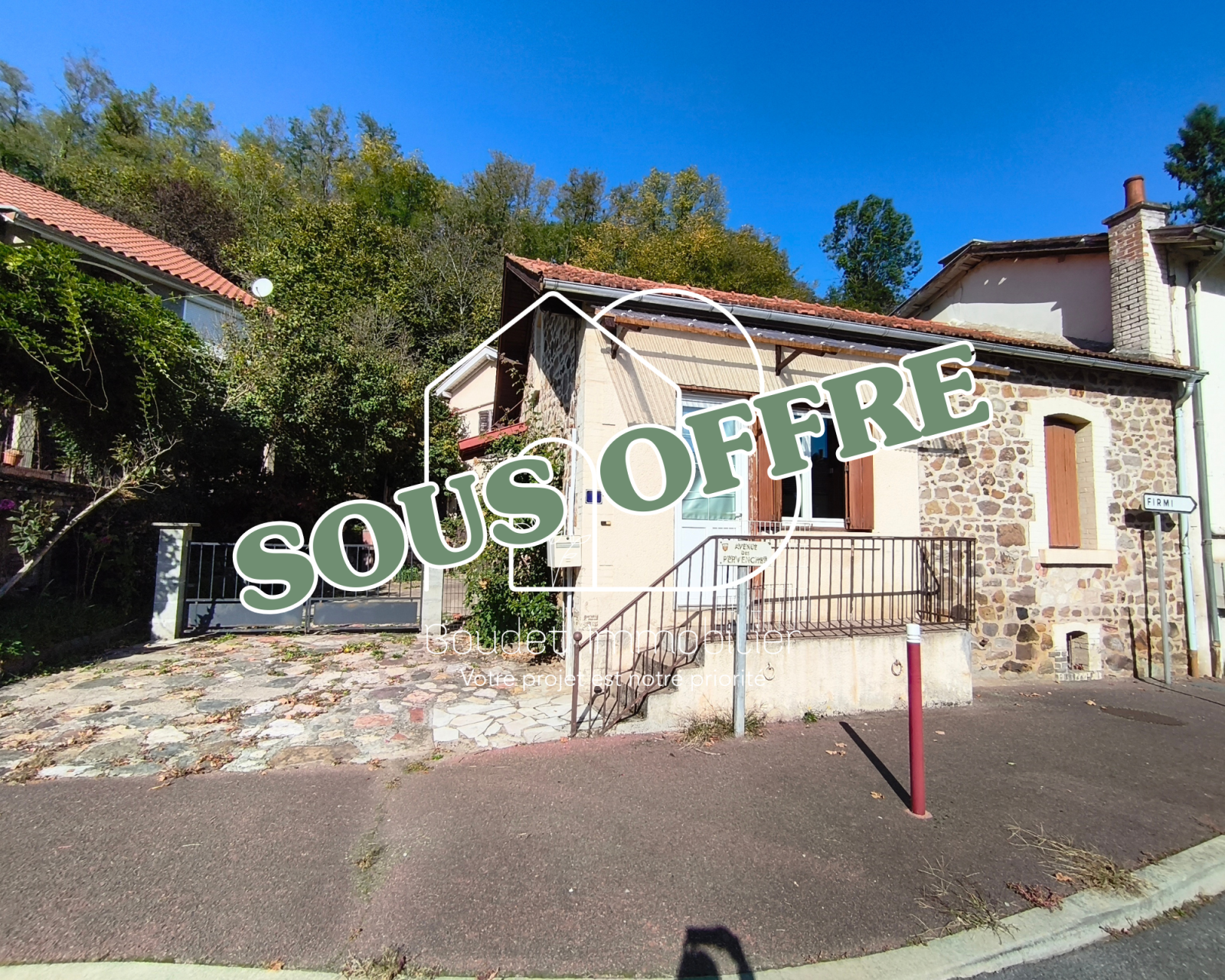 La maison principale et le batiment accueillant le garage et l'appartement sont séparés par une servitude de passage existante au bénéfice d’un voisin, clairement définie, qui n’impacte ni l’usage ni la jouissance de la propriété.