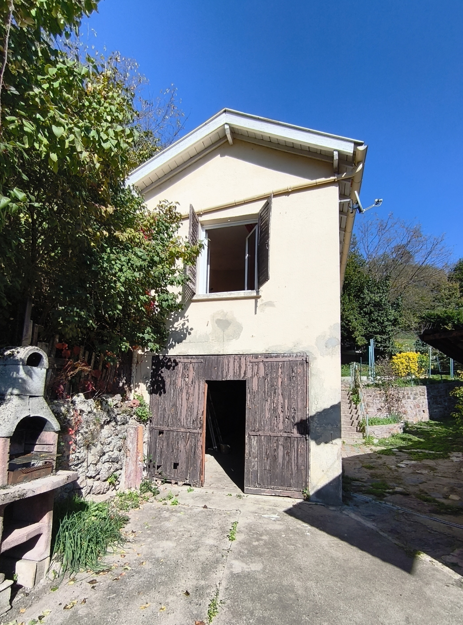 Un garage d’environ 27 m² complète le bien, ainsi qu’une dépendance située au-dessus, comprenant une pièce de vie, une chambre et une salle d’eau, idéale pour un rendement locatif ou pour recevoir famille et amis.