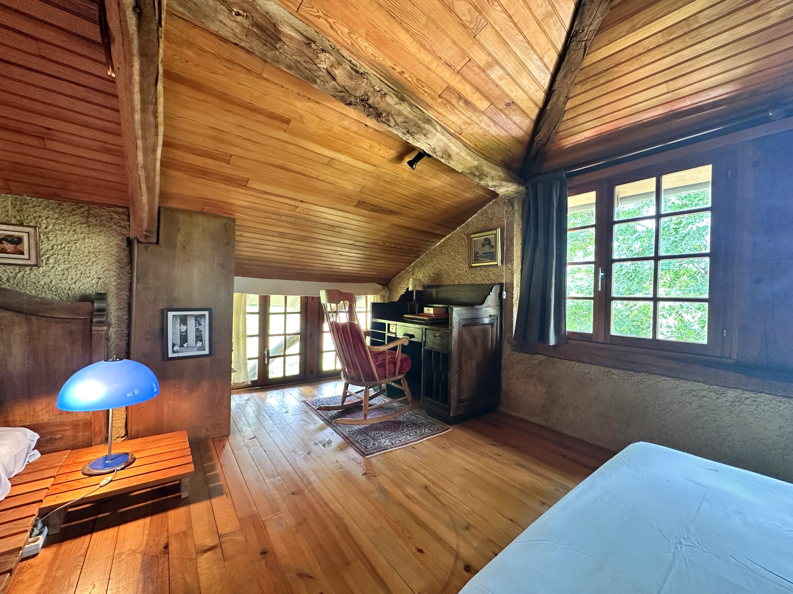 un duplex indépendant en pierre comprenant une chambre, une salle d’eau et un WC, idéal pour recevoir ou pour une activité gîte/chambre d’hôtes.