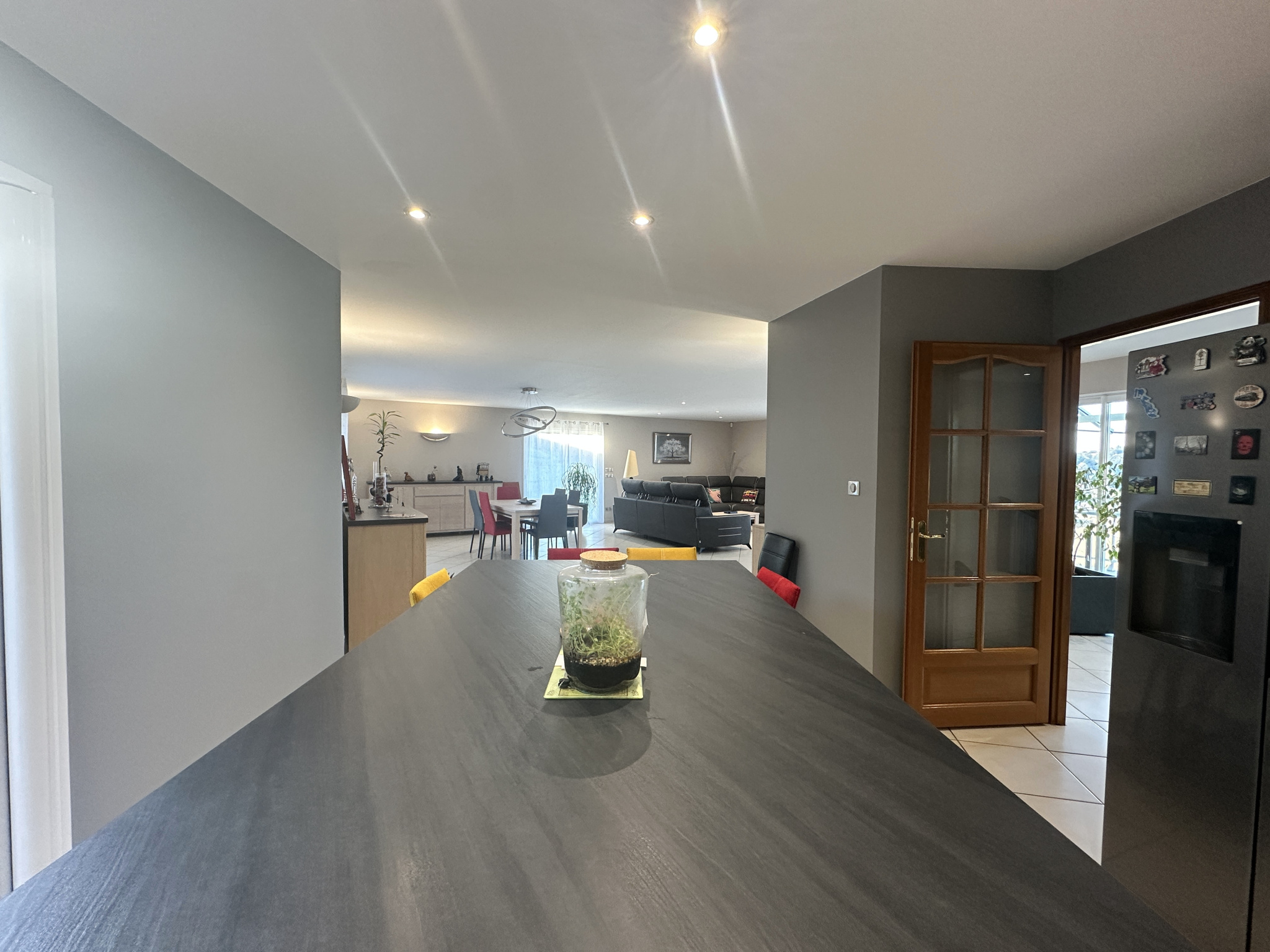 L’espace de vie, véritable pièce maîtresse de 70 m², séduit par sa luminosité et ses volumes spectaculaires. Le salon, la salle à manger et la cuisine ouverte s’y déploient dans une atmosphère élégante et chaleureuse, s’ouvrant sur une terrasse de 70 m² : un prolongement naturel de la maison, idéal pour recevoir ou simplement profiter des beaux jours.